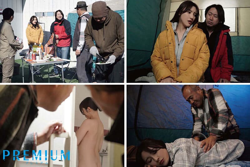 町内会の慰安旅行でキャンプに訪れた森沢夫婦は最近夫の仕事の忙しさもありスレ違い気味であった。そんな様子を下心丸出しで見ていた中年オヤジ達に狙われ密室テントで迫り寝取り性交!